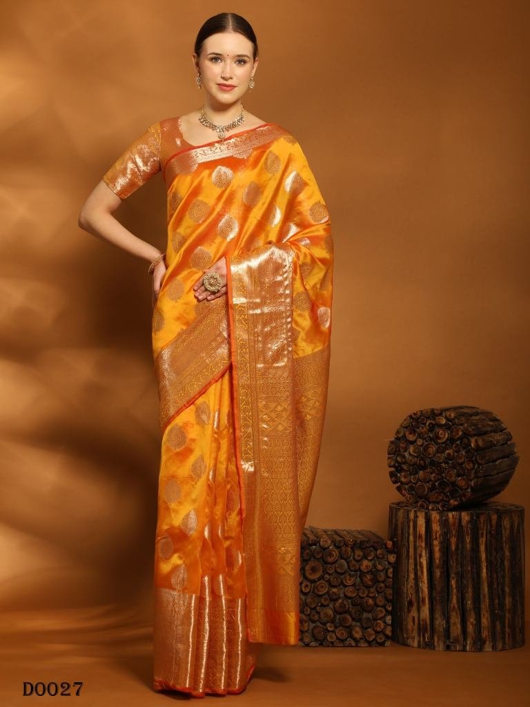Saree :- Soft Organza silk saree with zari weaving design all over the saree & zari weaving Rich pallu with zari weaving border.