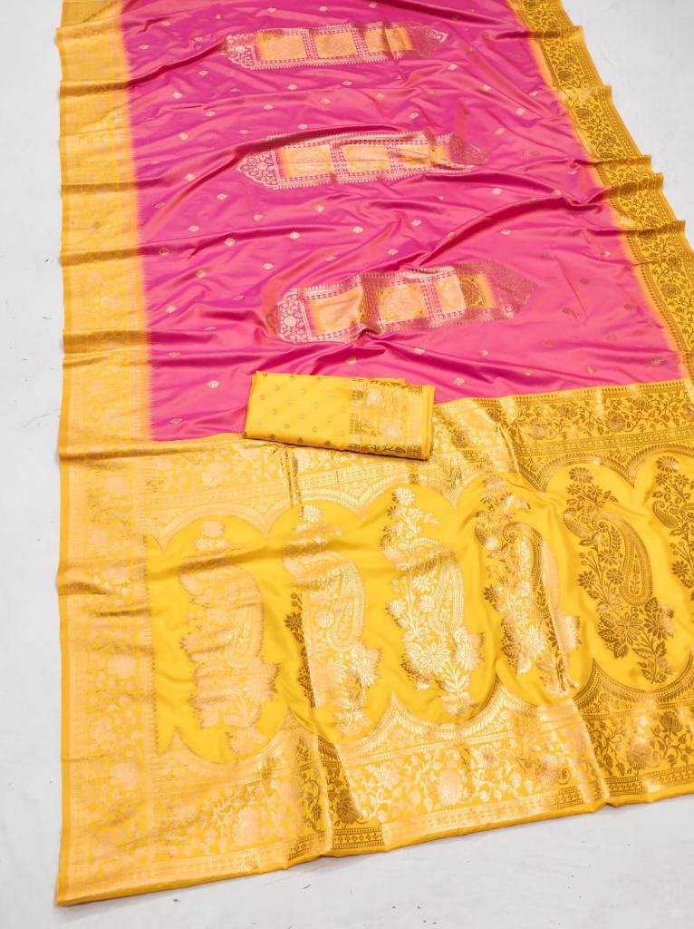 Saree :- Soft And pure banarasi silk saree with self weaving design all over the saree & zari weaving Rich pallu with zari weaving unique border & heavy rich Pallu.