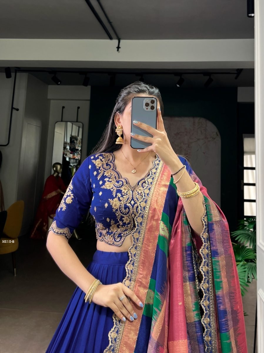Royal Blue Vichitra Silk Lehenga Choli With Foil Print Dupatta