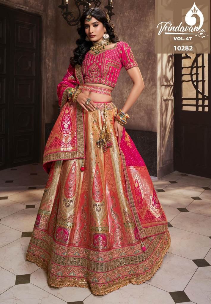 SpecificationRoyal Vrindavan Vol-47 Banarasi Silk LehengaFabric – Banarasi SilkFabric:- Silk With Sequence Zarkan WorkLehnga Blouse Dupatta With Belt And Latkan