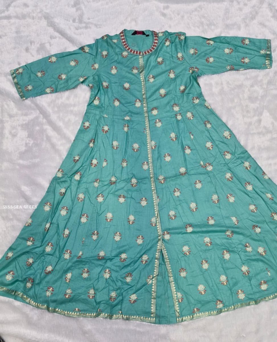 Fabric : Rayon Cotton Slub With Table Foil Print and Embroidered Abhla Work