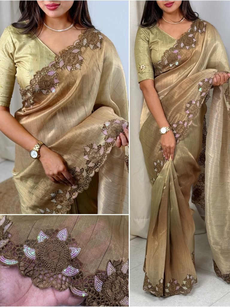 2-matt Multicolor Sequin With Thread Work In Saree.