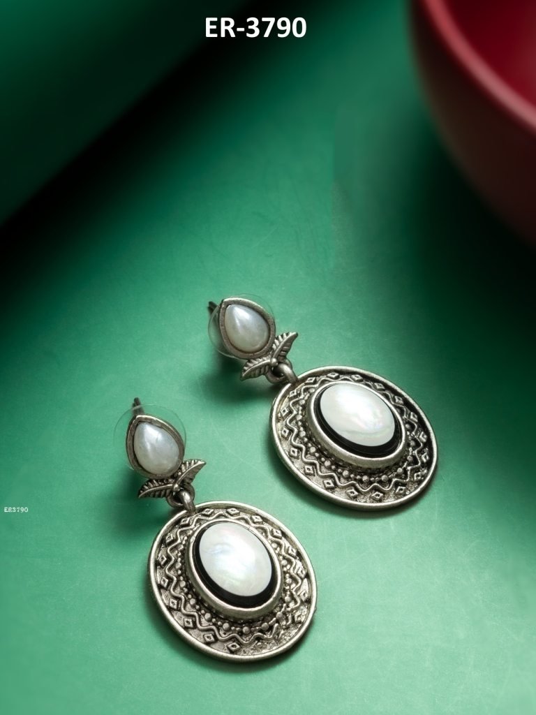 This Silver Look Alike Oxidized pair is Allured with Artificial Pearls