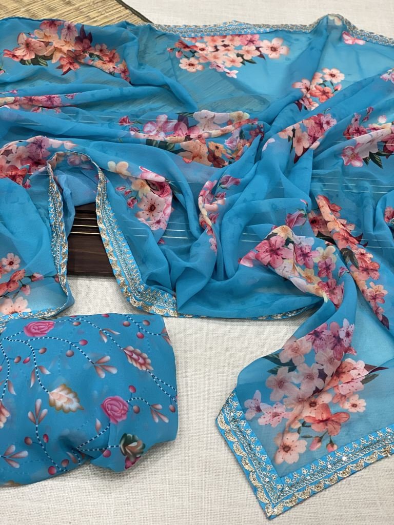 Beautiful Georgette Saree With Digital Print With Embroidery Work Border