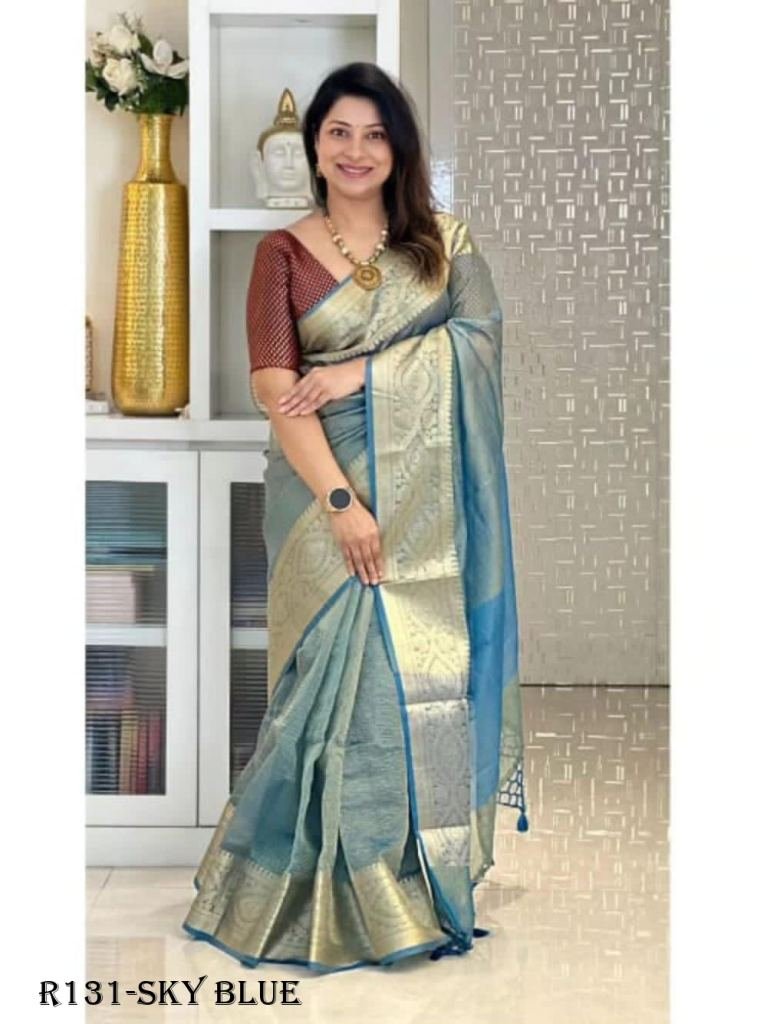 Sky Blue Banarasi Tissue Silk Saree With Weaving Zari Work