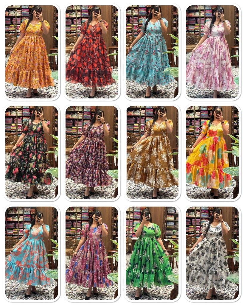 DetailsMaterial : Kota Chex Complete Linning Sleeves : Short Puff Sleeves Neck : V NeckLength : 48 inchSize : M-38 L-40 XL-42 XXL-44