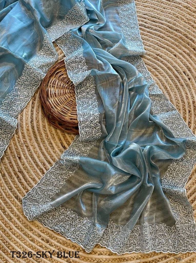 Pure Chiffon organza silk saree in a solid color with embroidery viscos thread work in saree Paired with running blouse of same color of saree with work Material: Pure Chiffon Organza Silk