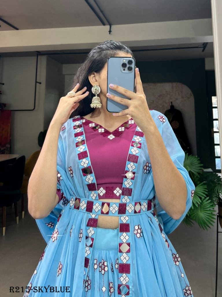 Sky Blue Classic Party Wear Georgette Lehenga Choli With Mirror Work Belt
