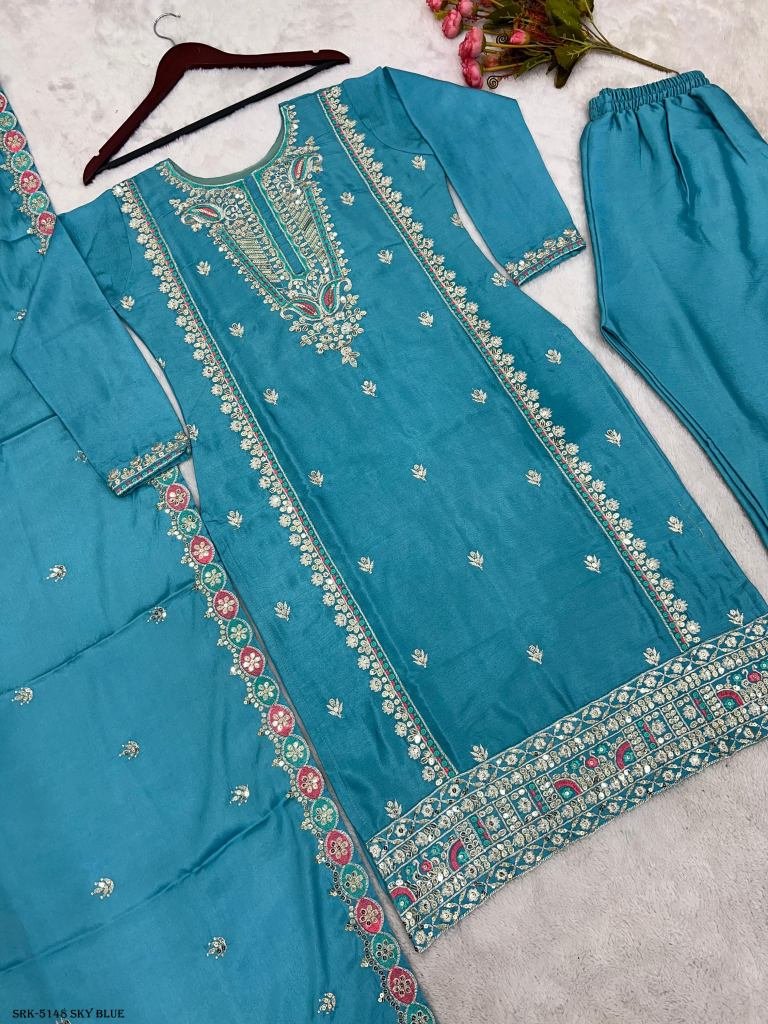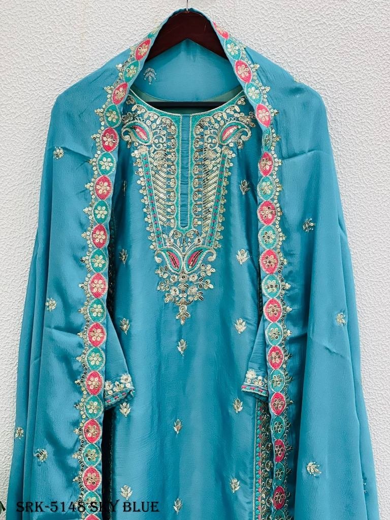Presenting New Designer Collection In Pure Chinon With Heavy Embroidery Sequence Work Top-Bottom And Dupatta Set Fully Stitched Ready To Wear
