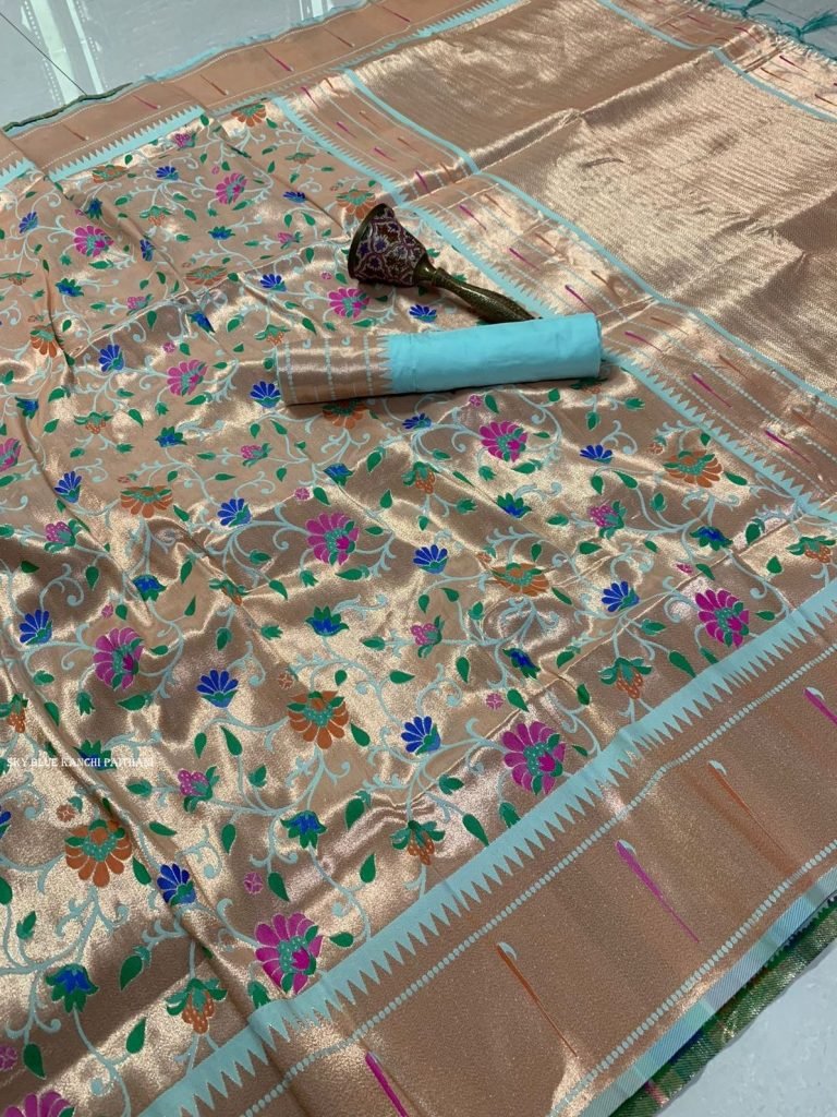 Pure silk sareesFABRIC:-PURE SOFT KANCHIVRAM PETHANI SILKORIGINAL PURE ZARI zal DESIGN AND MINAKARI BORDER AND HEAVY MINA ZARI WEAVING Blouse - Running with zari border