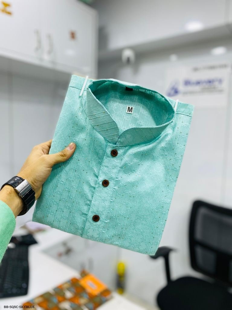 Product detailsKurta fabric :-J-card silk with weawing sequencePajama Fabric :-Pure CottonSize :- M-38, L-40, Xl-42, Xxl-44, 3xl-46Occasion :- Wedding, Festival