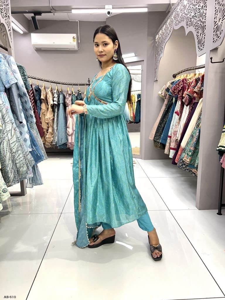Gown Work :- Heavy Digital Print + Embroidery Zari work