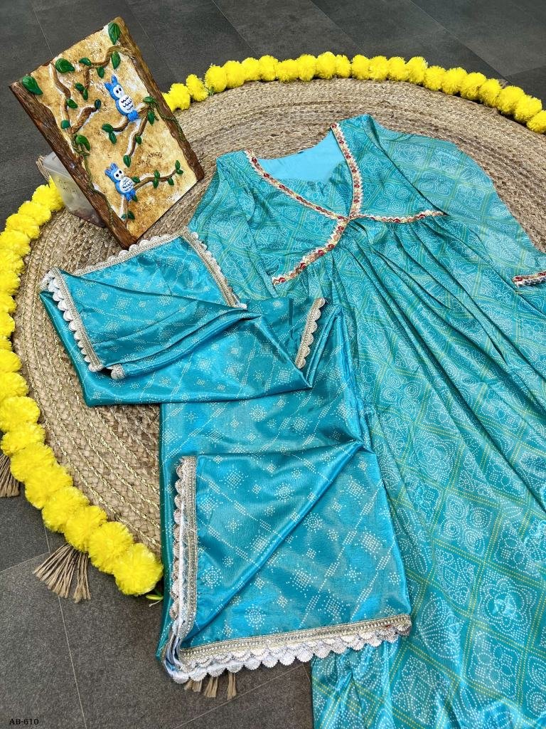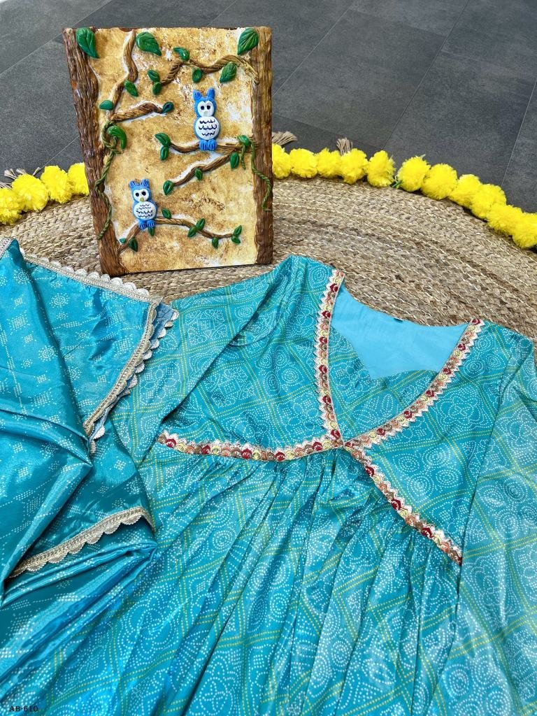 Designer Rani Bandhani Gown (Full Stitch)