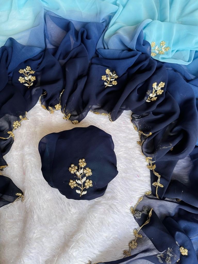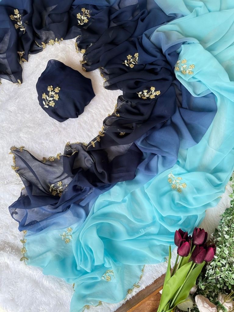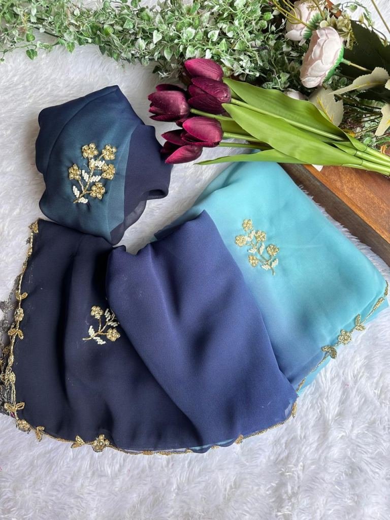 Fabric :- Georgette Work :- HandworkColor :- All in Dual ColorSaree Length :- 5.5 mtrBlouse Length :- 1.0 mtr