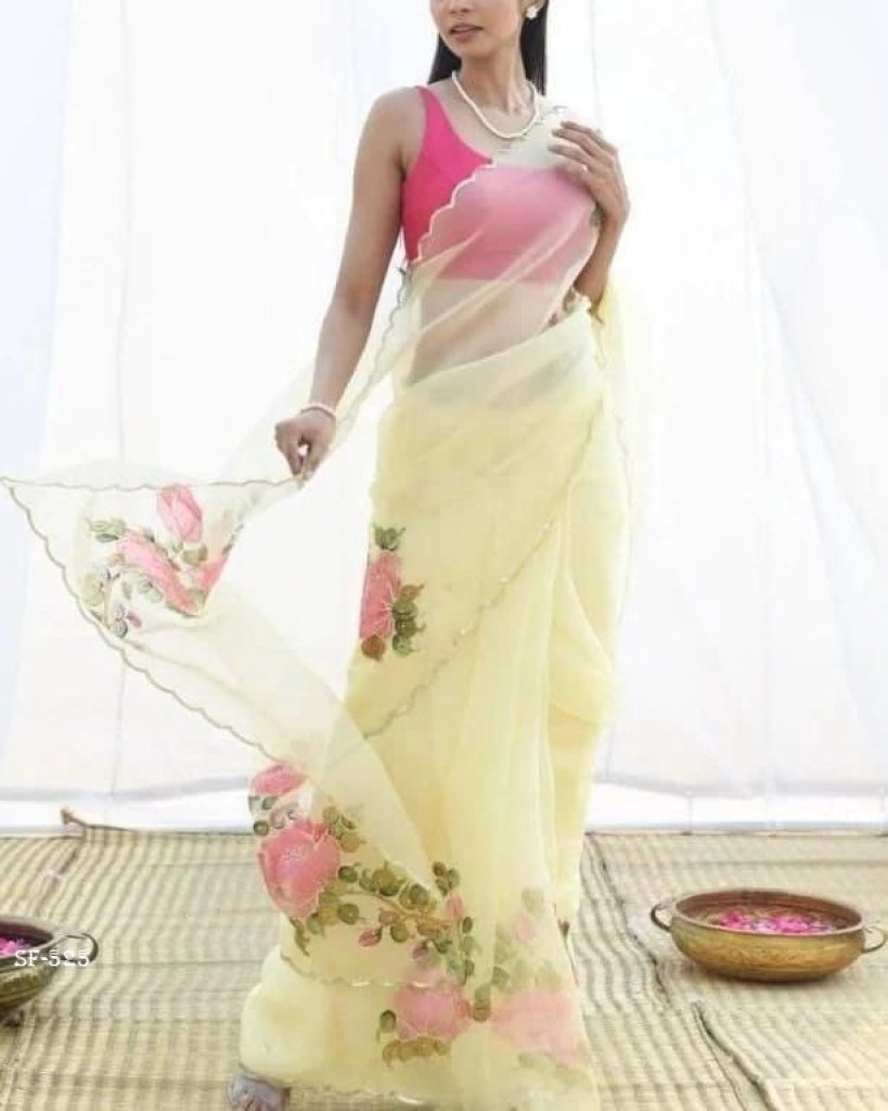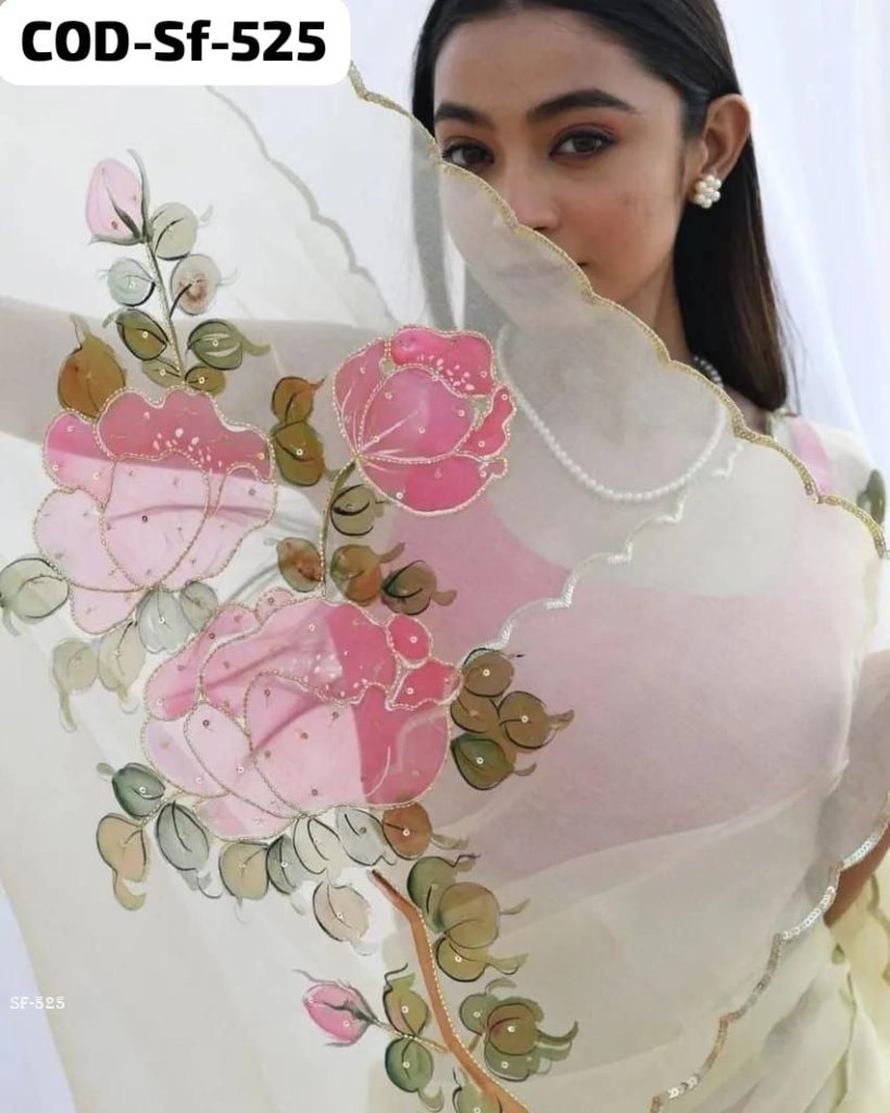 Fabric - Pure Organza soft Silk digital work ALL OVER GORGEOUS HAND KHATLI WORK AND SEQUENCE WORK& Sequence Arako