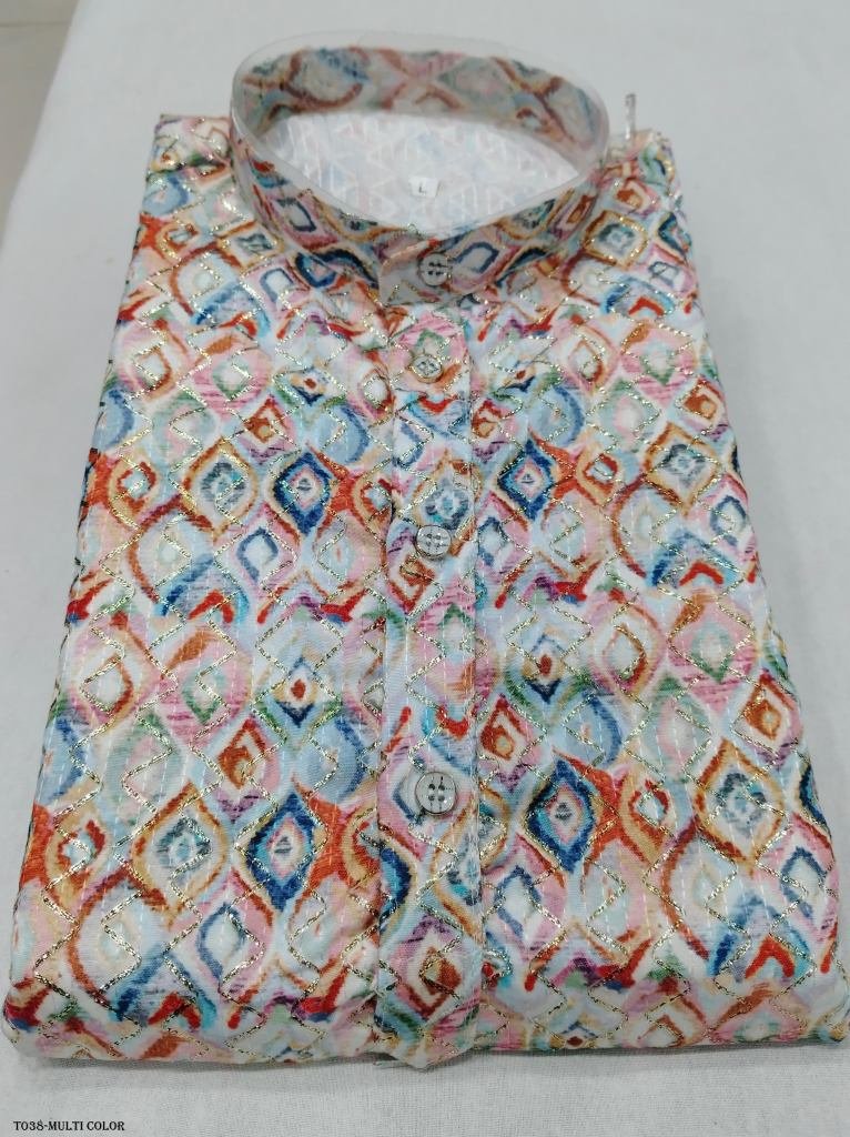 • Square Print Cotton Multi Color Kurta Pajama Set With Gota Work