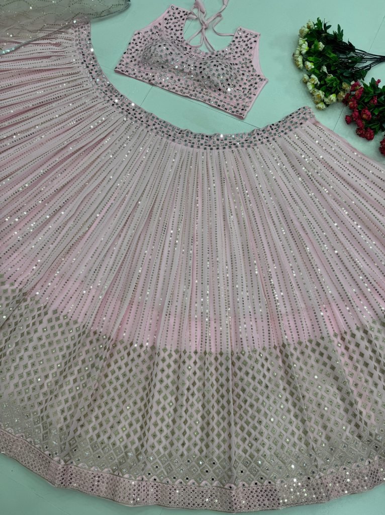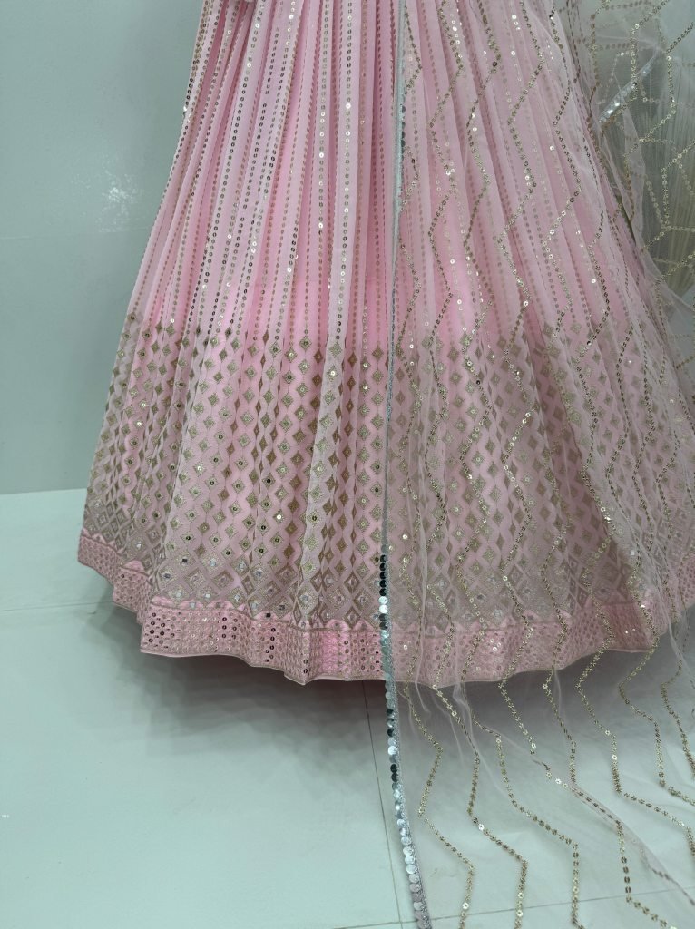 Lehengas Work : Heavy Embroidered Sequence Work With Real Mirror Hand Work 3 Mtr Flair Can-vas, Can- Can
