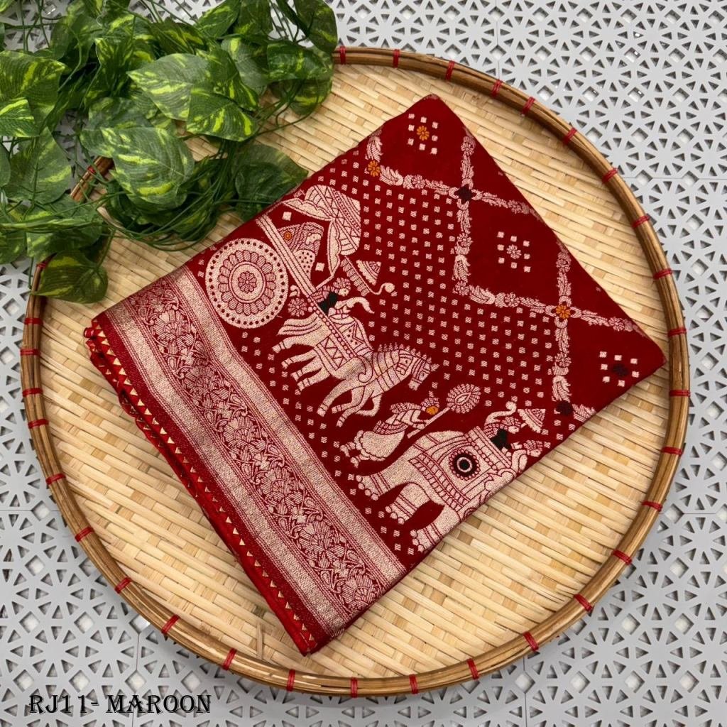Obsessed with this stunning Dola silk saree featuring a beautiful fusion of traditional