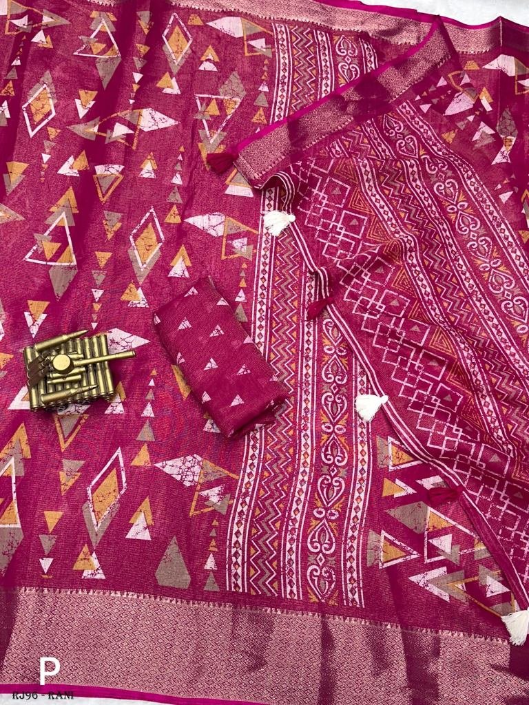 Pattern-Designer hand printed saree with zari weaving in full saree and zari boder & tussles in pallu