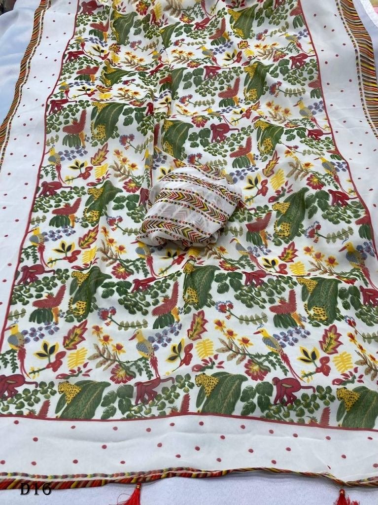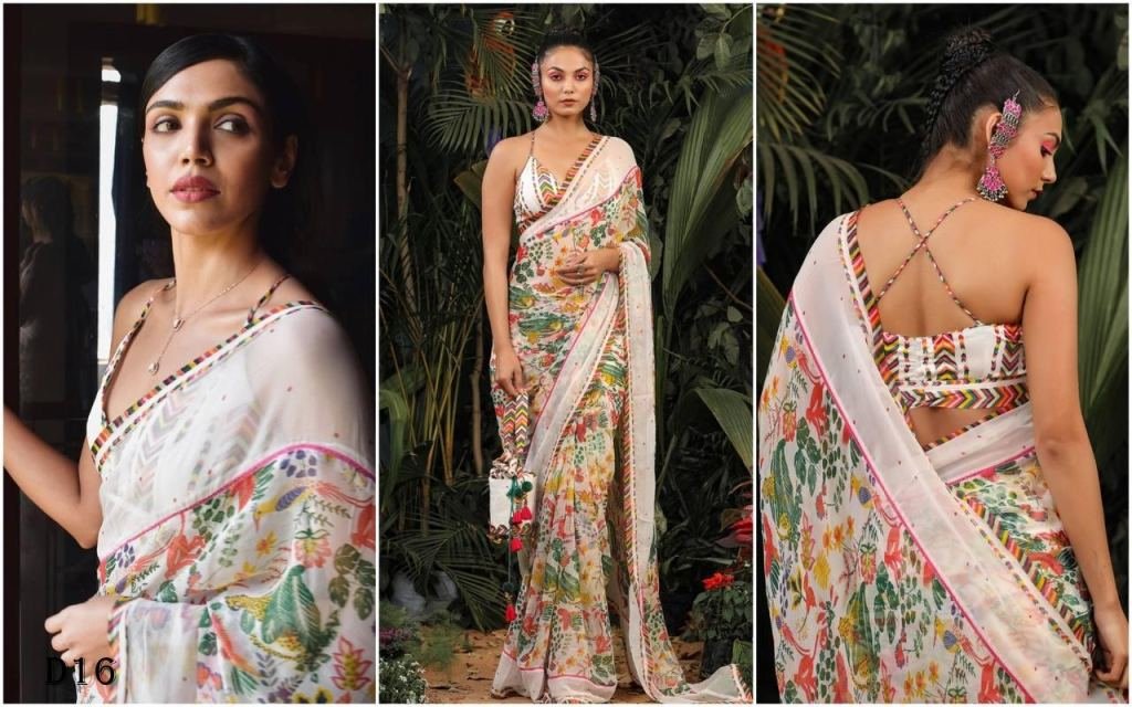 Material: High-quality faux georgette ensures a lightweight and comfortable drape.