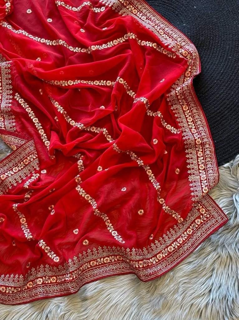 Presenting The pure Georgette silk Saree With Beautiful multi stich embroidery work And we using viscos thread only