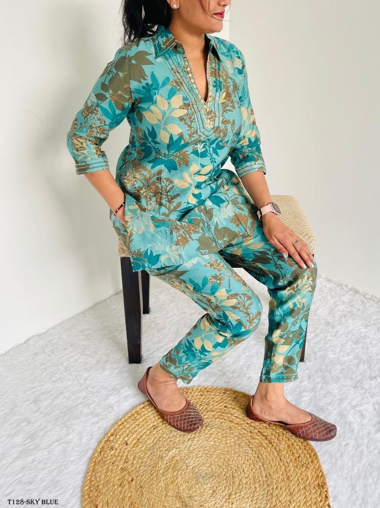fabric details:kurta fabric pv cotton chahnder with mille printed adisnal additional foil techep and neck hand glass mirror work , sleeve fancy thread techep