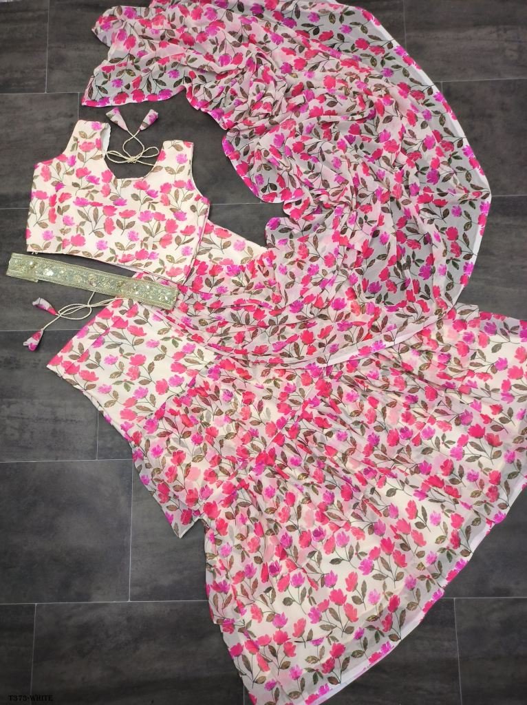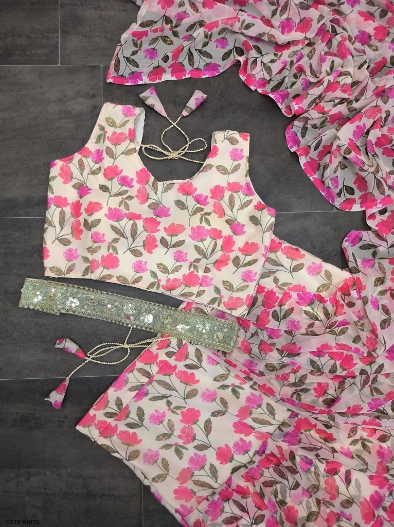 Lahenga Saree Faux Georgette With Digital Print & 3 Layer Ruffle With Attached Dupatta