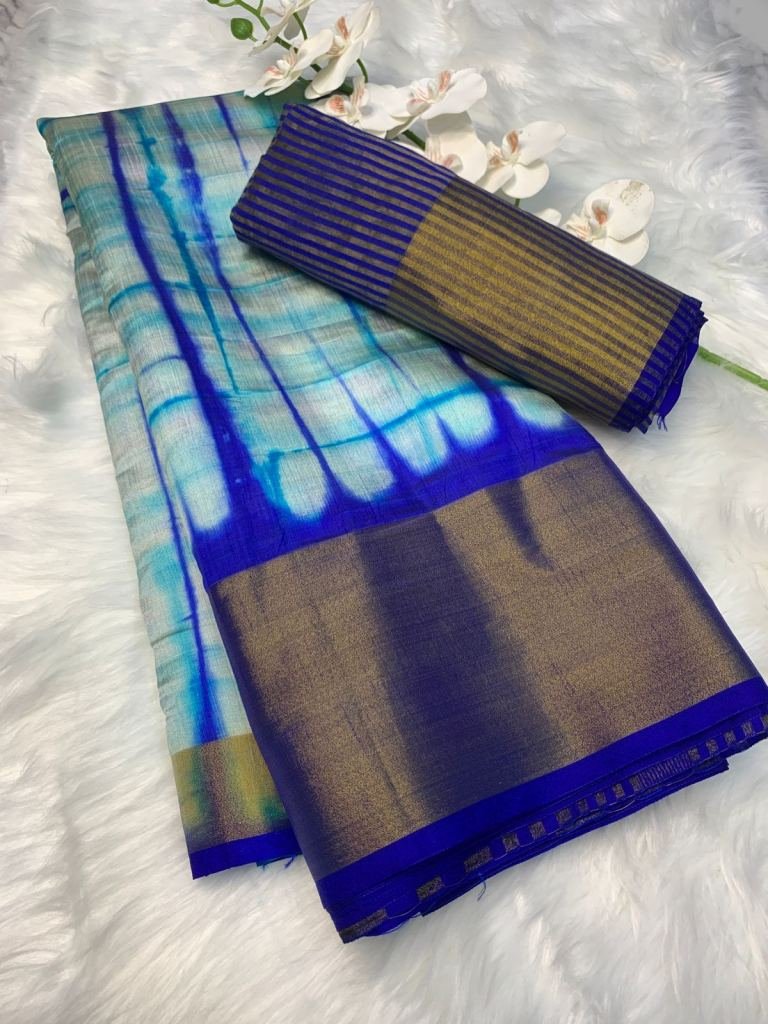 Fabric :- Dola SilkPattern :- Printed Print :- Shibori PrintedSaree Length :- 5.5Blouse Length :- 0.8