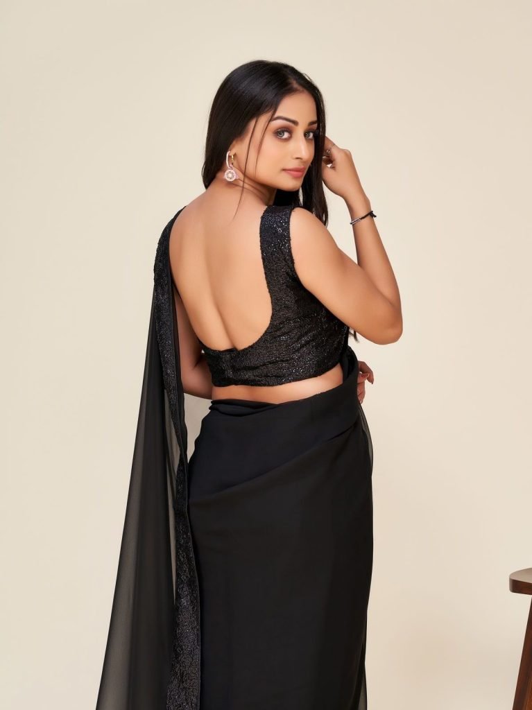 Fabric :- GeorgetteWork :- SequinceBlouse :- Banglori Silk With Sequince work (all over front & back ( Unstich ))Occasion :- Party WearSaree Meter :- 5.5