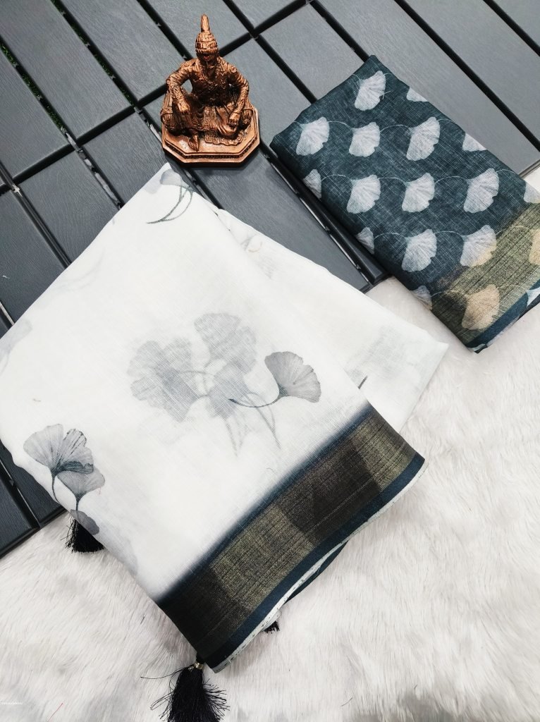 Catalogue :TAPSYASaree Fabric: Heavy lilen digital printBlouse:silvar zari butti pattern on lilen slub silk. We believe in Quality & Fashion