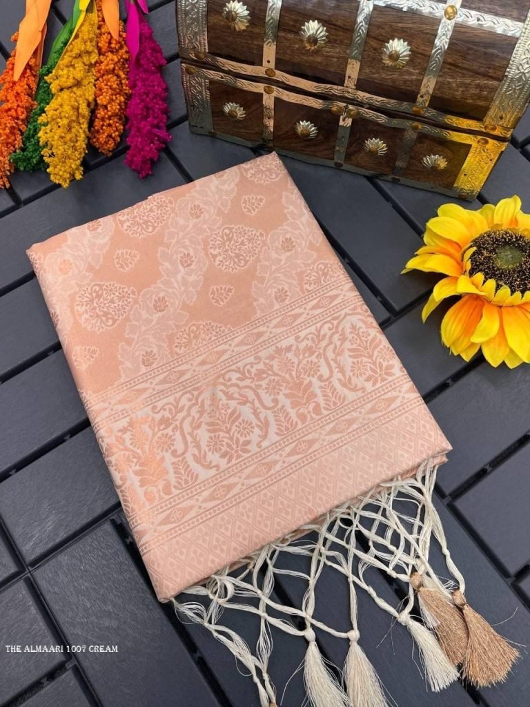 ULTRA SATIN PURE BANARASI Silk Saree, Exuding Regal Charm With Its Rich Pallu And Intricate Brocade Blouse, Elegantly Adorned With Enchanting Tassels On The Saree's Edge.