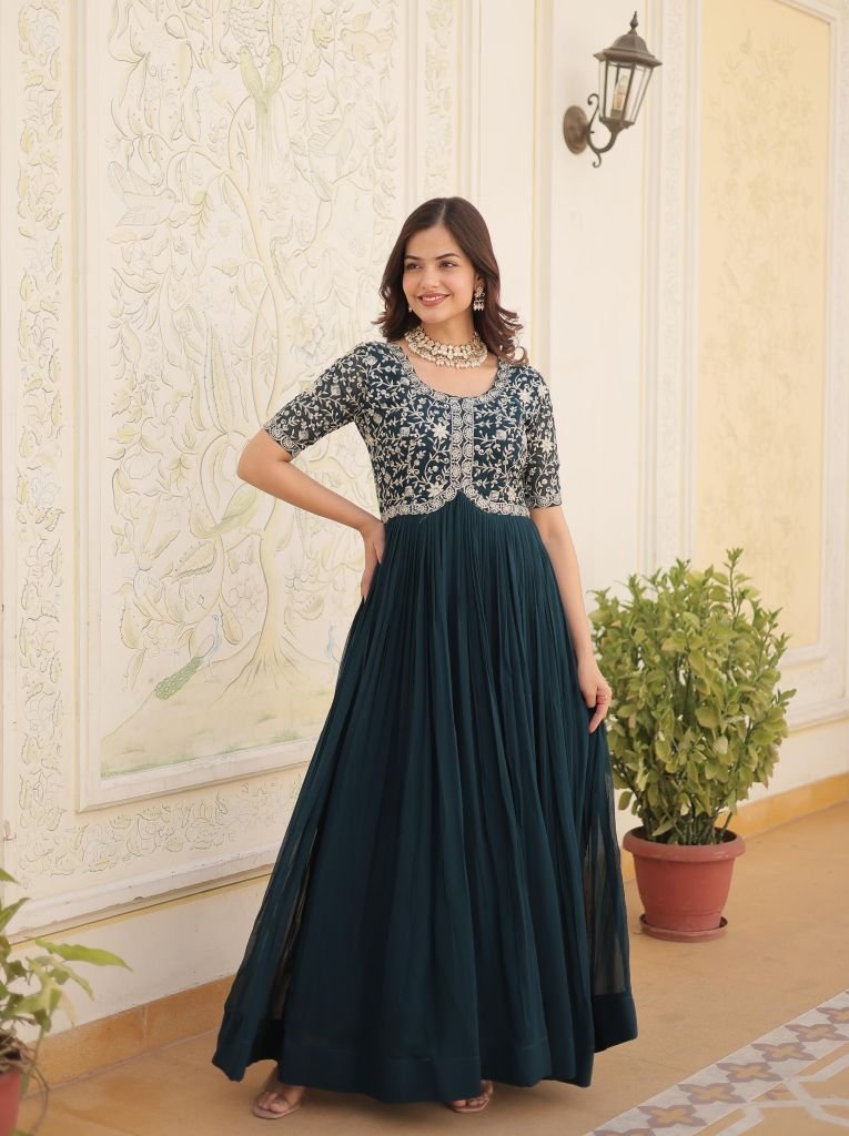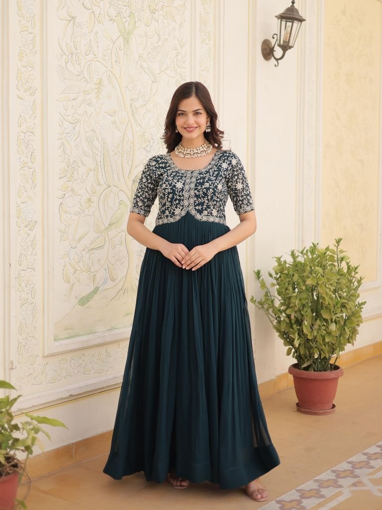 Fabric & Work :- Faux Blooming with Embroidery Zari Sequins-work