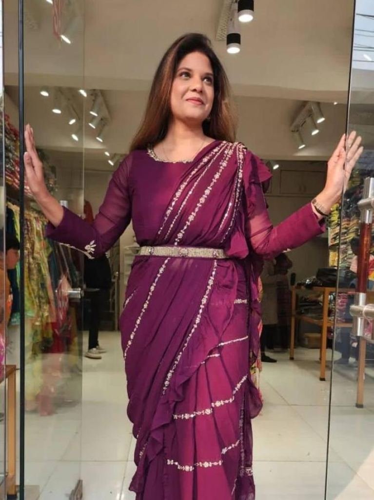 Name : New Super Trending Embroidery cording work ready to wear Saree