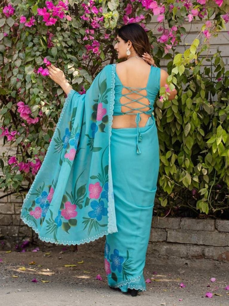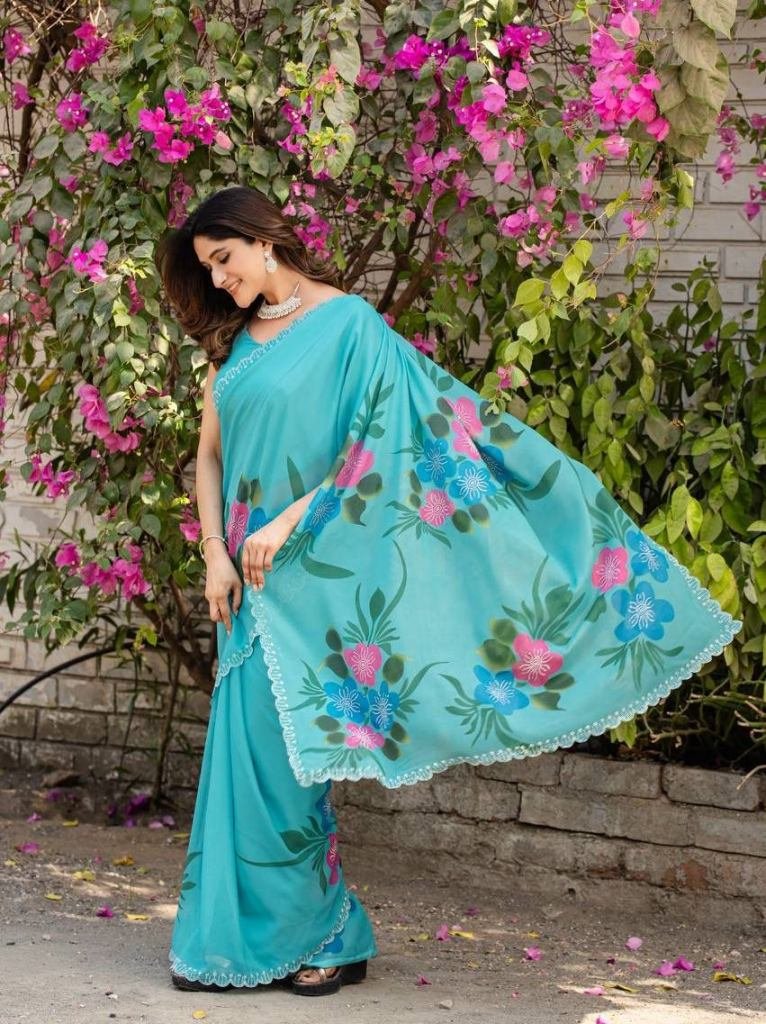 Sarees Work :fancy Digital Print With Hot Fix Chiroshki Dimond Work
