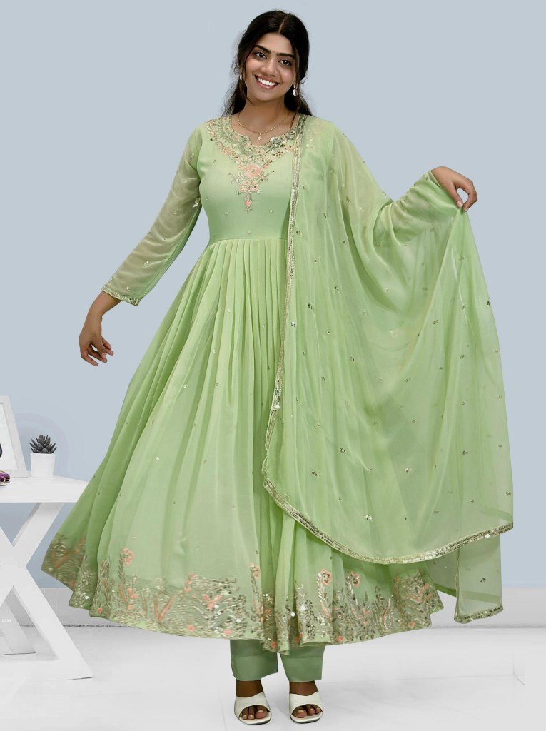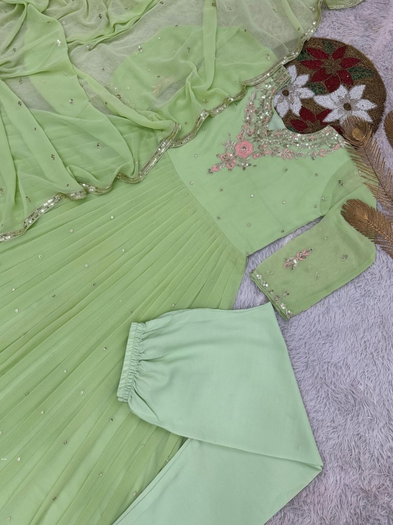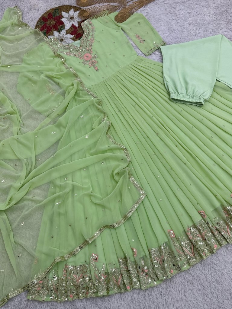 Unique Rediam Pista Color Gown with Pant and Dupatta