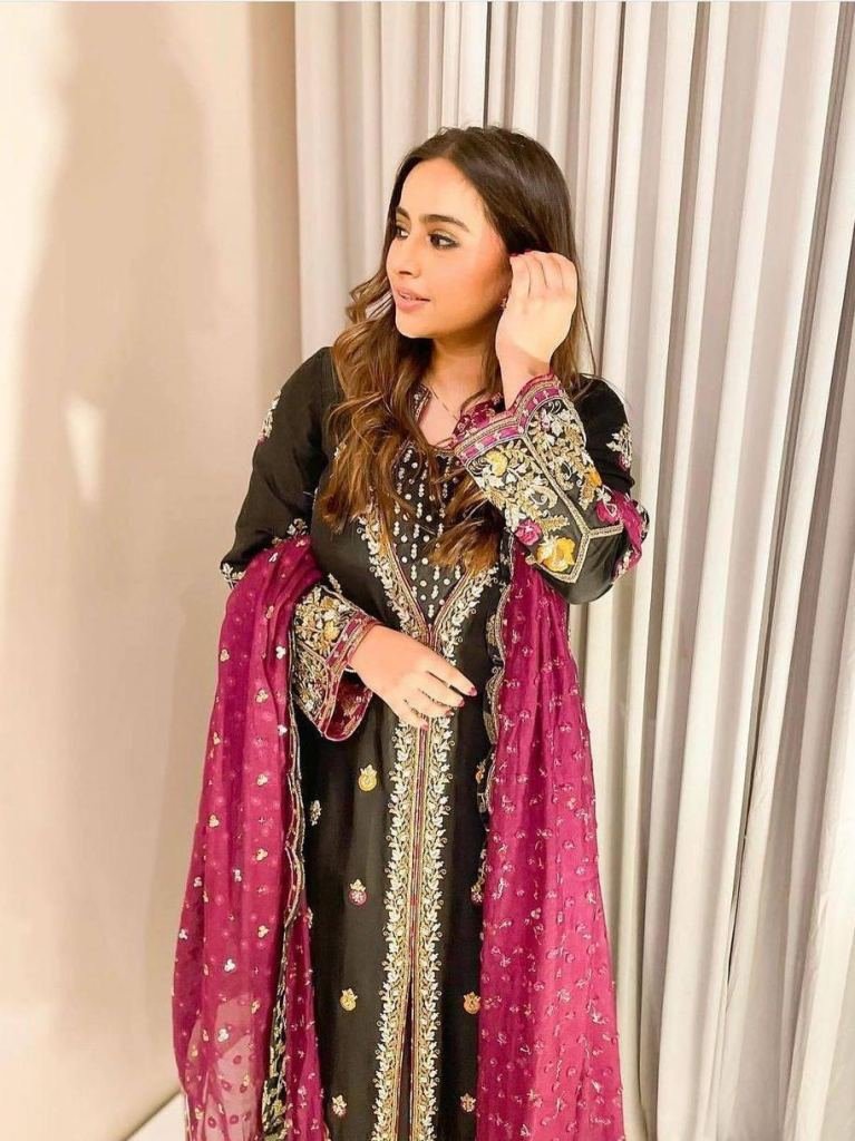 Top : Heavy 9000 velvet with sequence embroidery work (fully stitched)