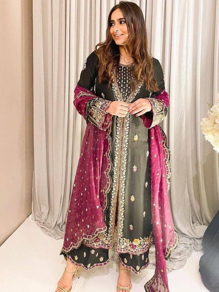 Plazzo: Heavy 9000 velvet with sequence embroidery work (fully stitched)