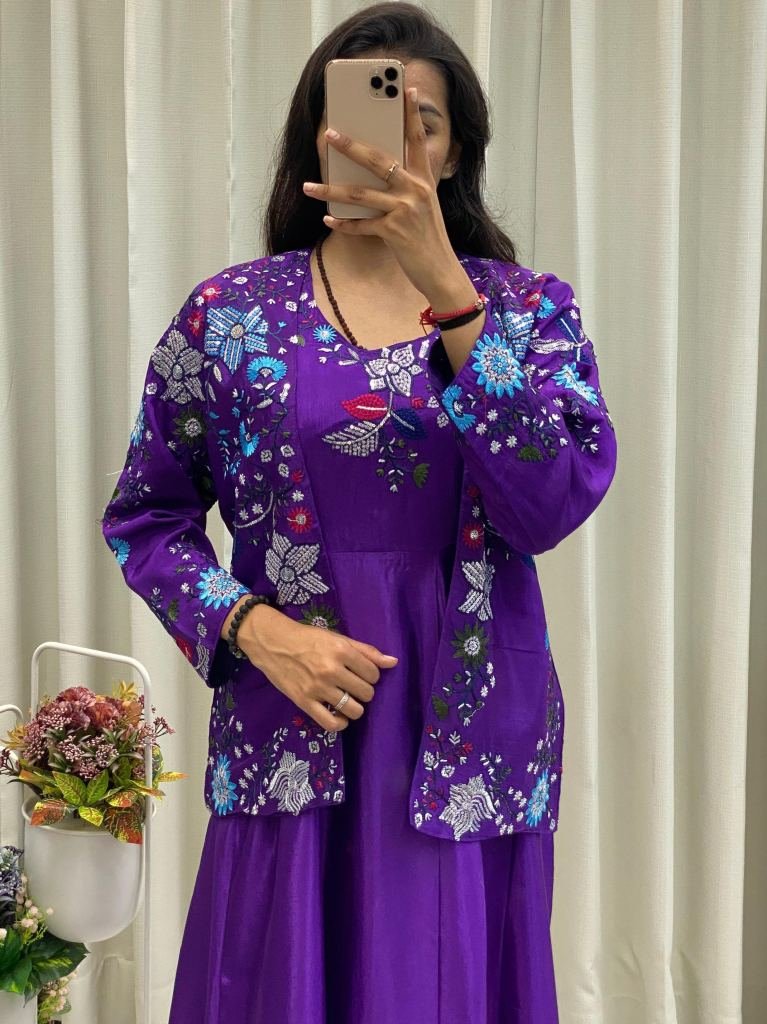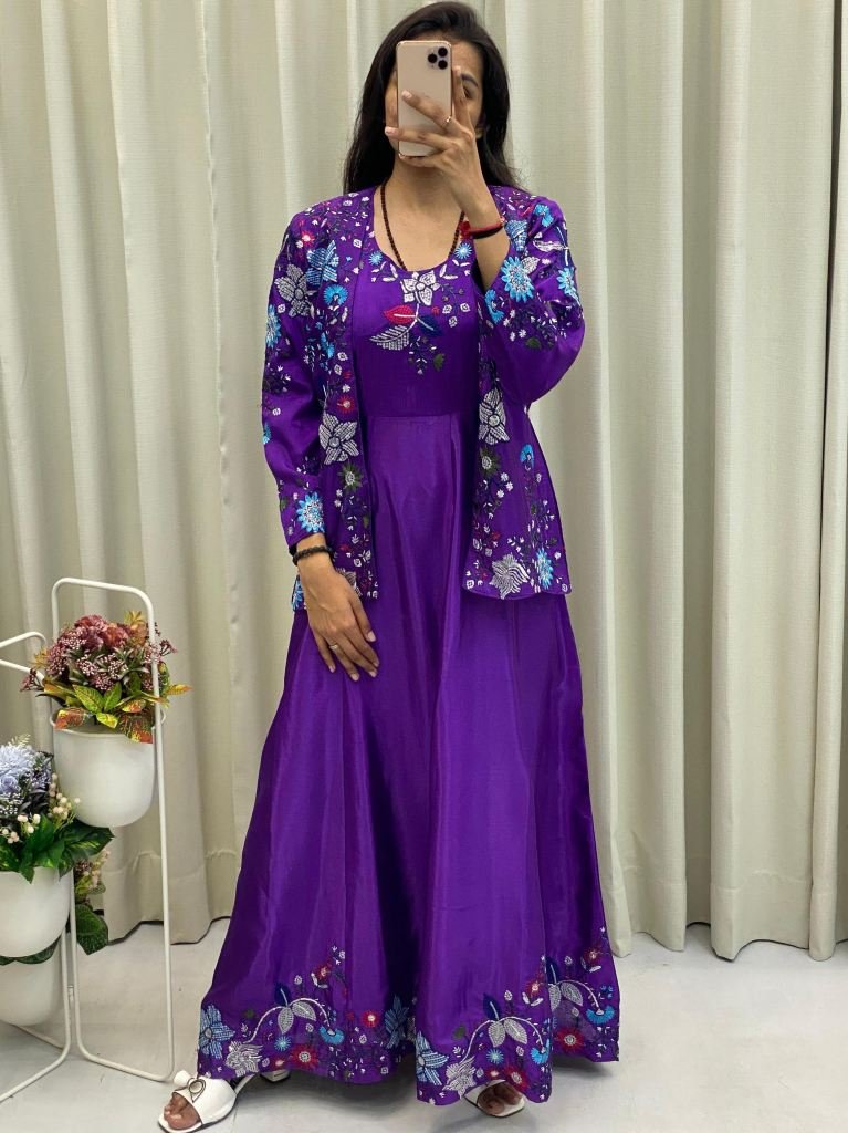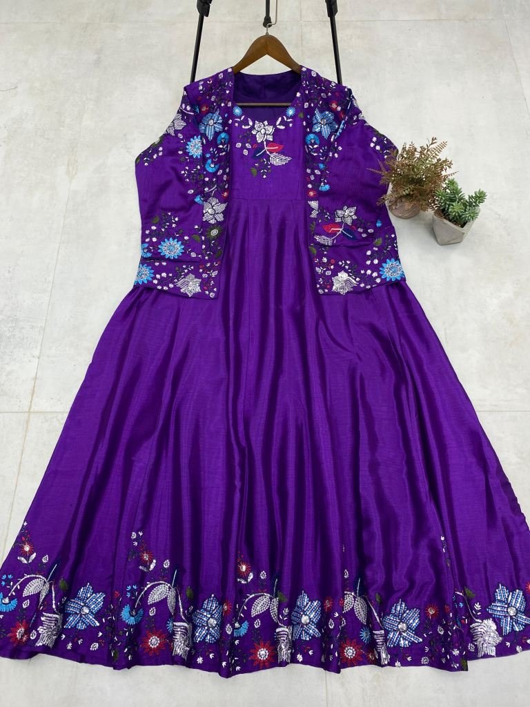Gown Chinon With Sequence Embroidery Work Full Stitched Free Size