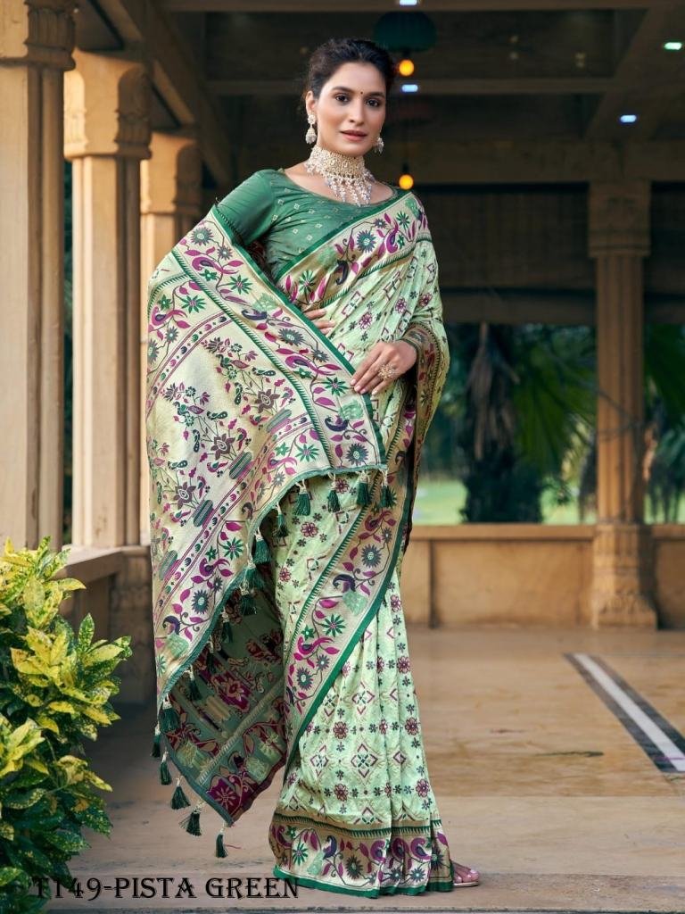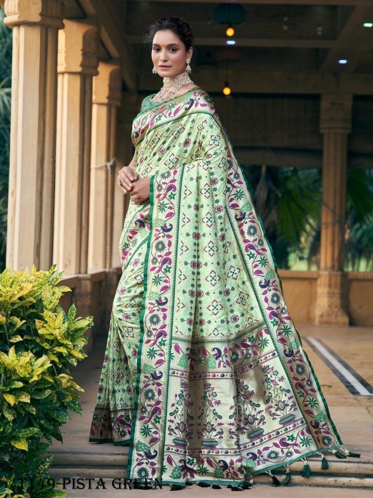 Soft Paithani Silk Saree with all over patola style Weaving & contrast peacock weaves Border and rich zari woven pallu with Fancy Colourfull Tassels