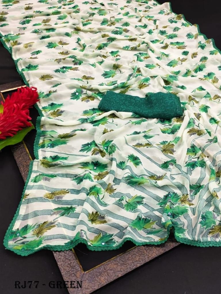 Description-heavy Weightless Georgette With Diable Lace and Mirror Work All Over Saree.