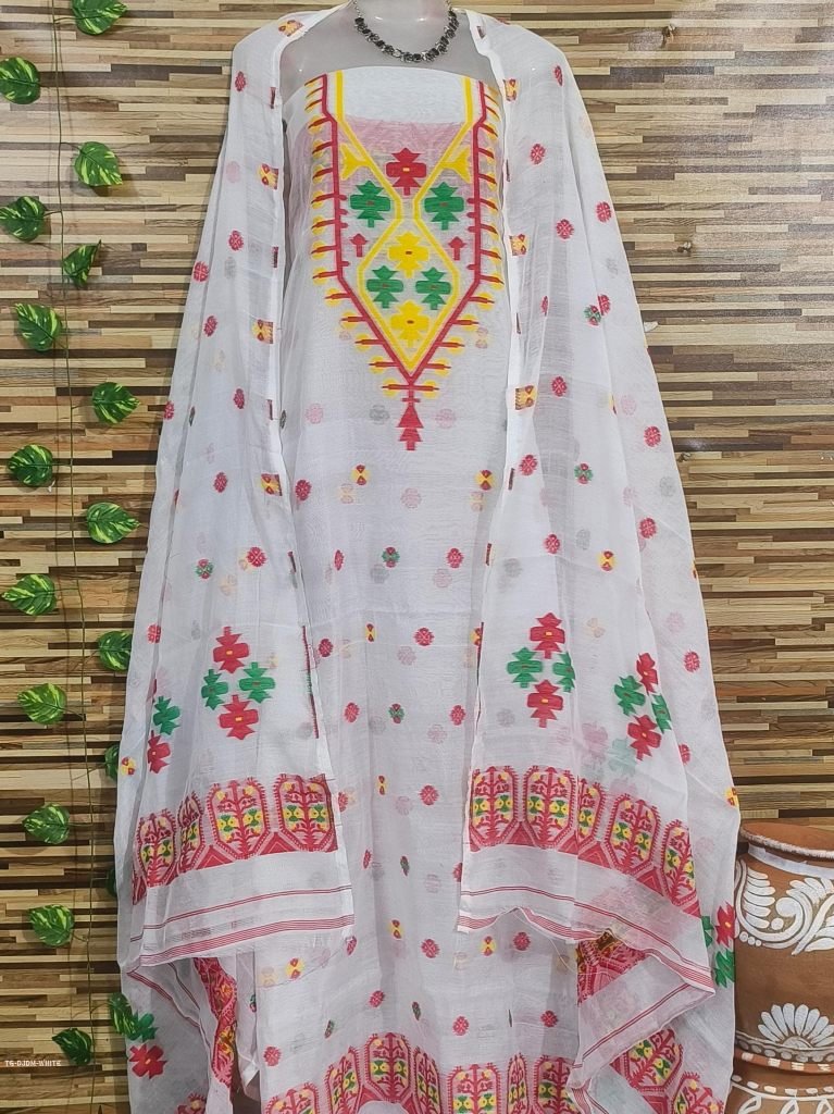 NEW EXCLUSIVE SUTS PCS Dhakai JamdaniMost demanding productjamdani suits 2 pcsFabric :- JamdaniTop Meter :- 2.5 MeterDupatta :- 2.5 MeterColor :- WhiteOccasion :- Wedding, Festival, Regular, Function