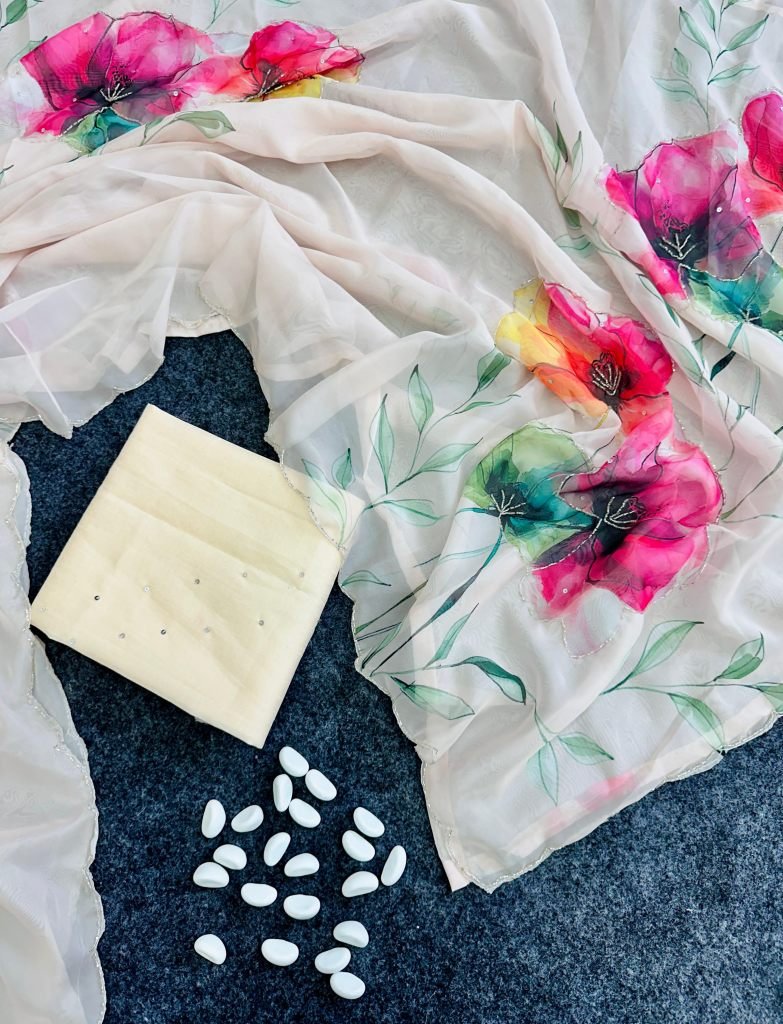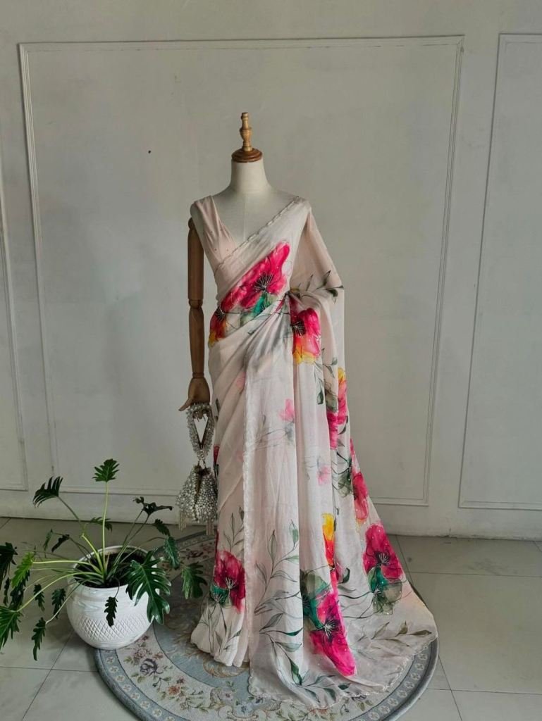 Fabric :- Organza Pattern :- Print And WorkWork :- HandworkOccasion :- Party WearSaree Length :- 5.5Blouse Length :- 0.8
