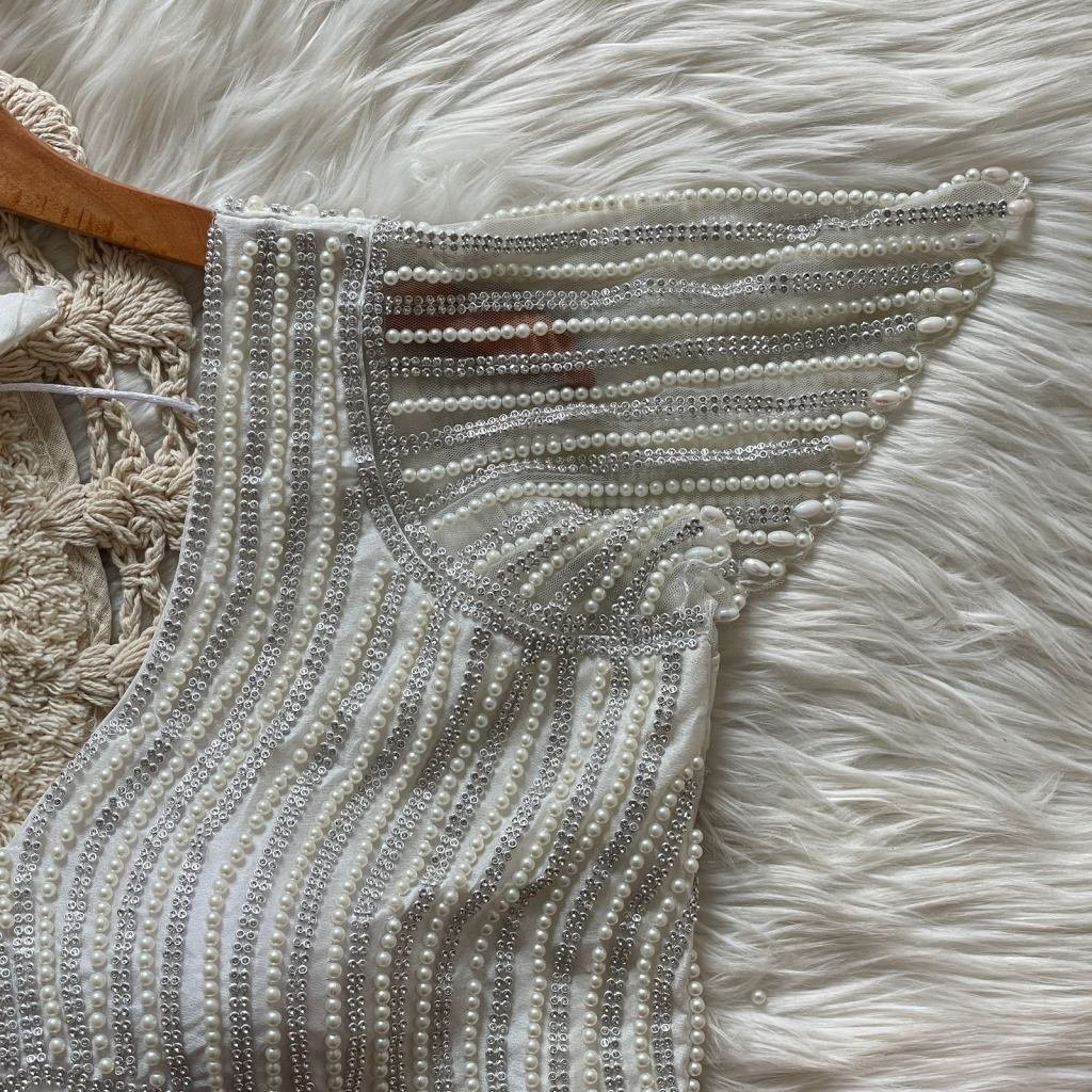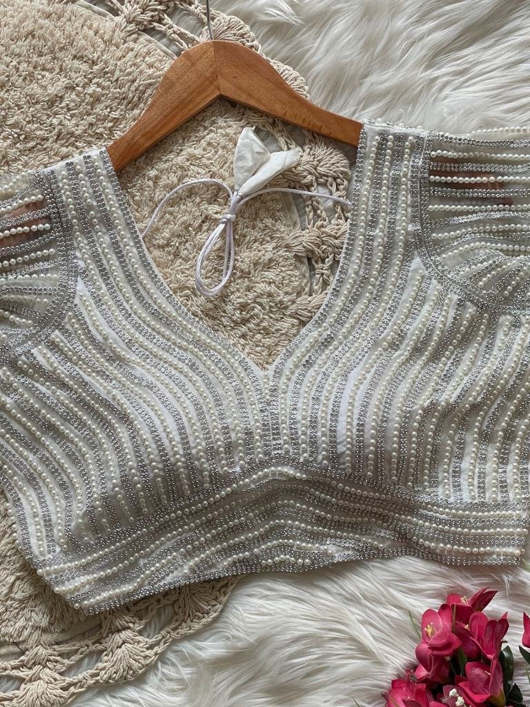 Pearl Moti Blouses Full Sleeves Presenting Beautiful Handcrafted Pearl Work In All Over Front And Back Of The Blouse Fabric- Pure Silk Work- Handcrafted Pearl WorkSize- Free Size 38/40Height-15 + Inch