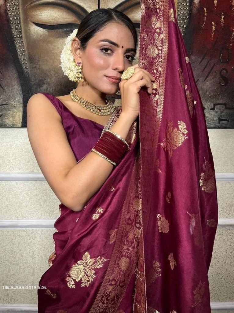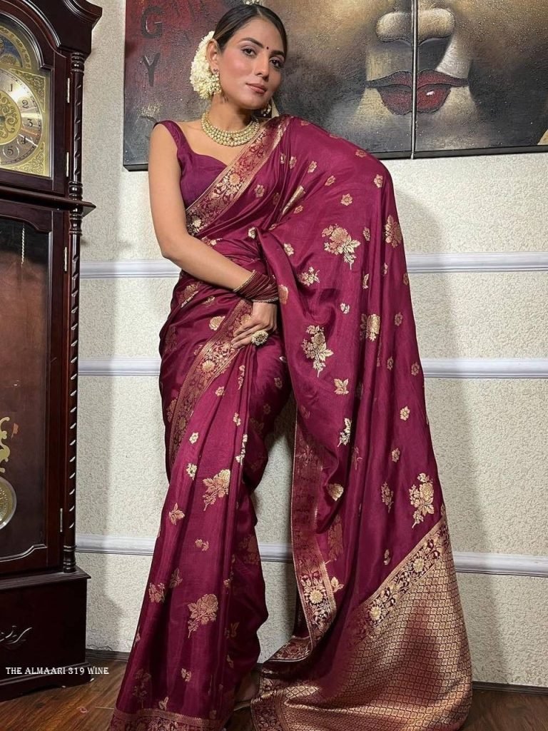 Fabric : Banarasi Soft Silk Saree Length :- 5.5 MeterBlouse Length :- 0.8 MeterColor :- WineOccasion :- Wedding