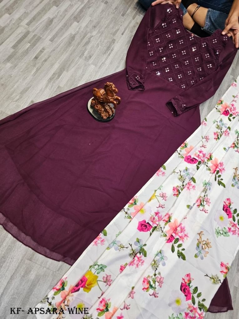 Presenting New Heavy Fox Georgette Gowns With Embroidery Mirror Work With Digital Printed Dupatta