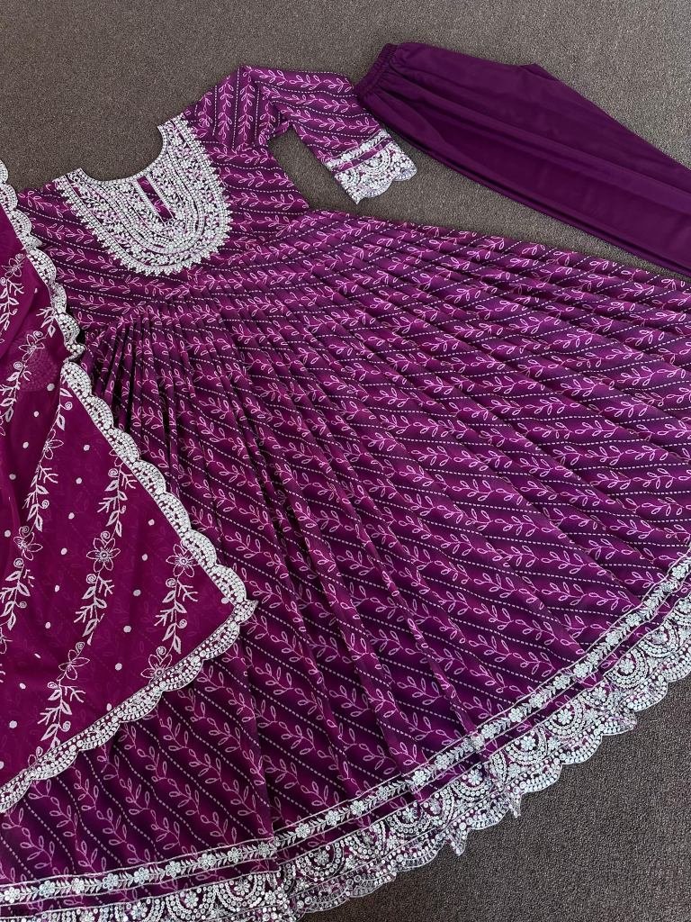 Gown Work : Fancy Digital Printed With Embroidery And 5mm Sequins Work