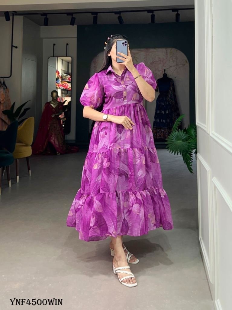 Frock Work : Floral Print With Foil Work