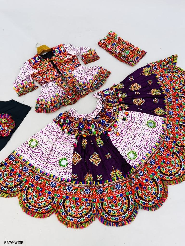 Wine Navratri Traditional 4PC Kids Lehenga Set With Kedia And Cap