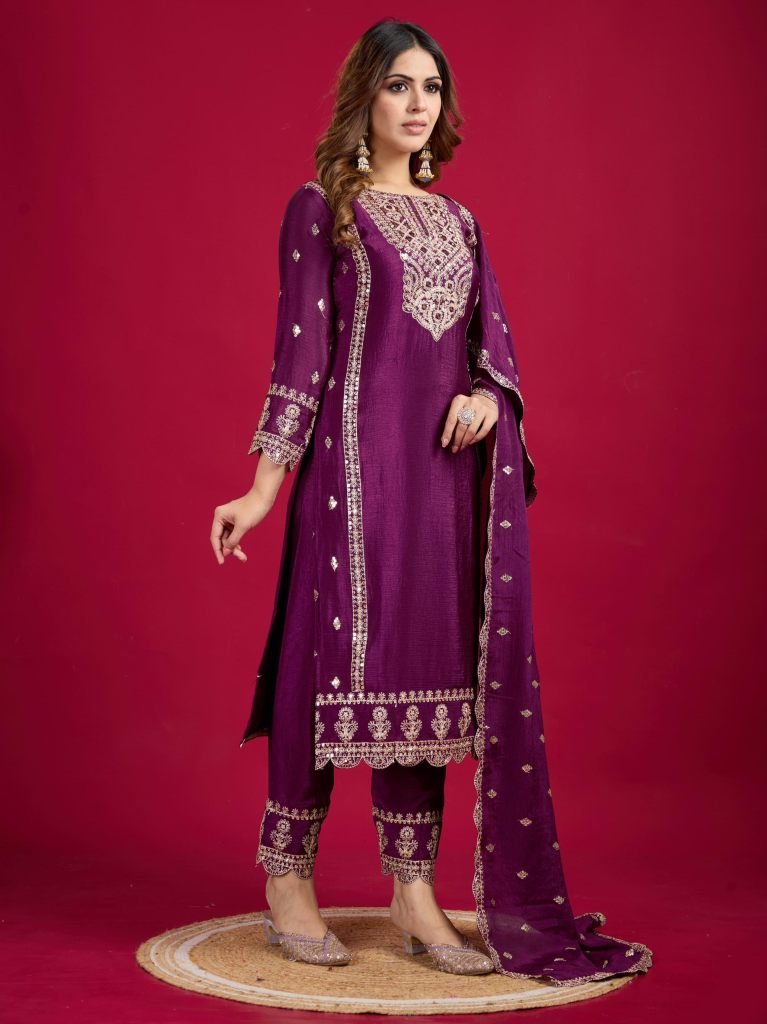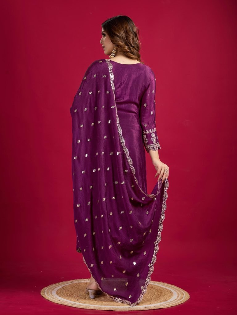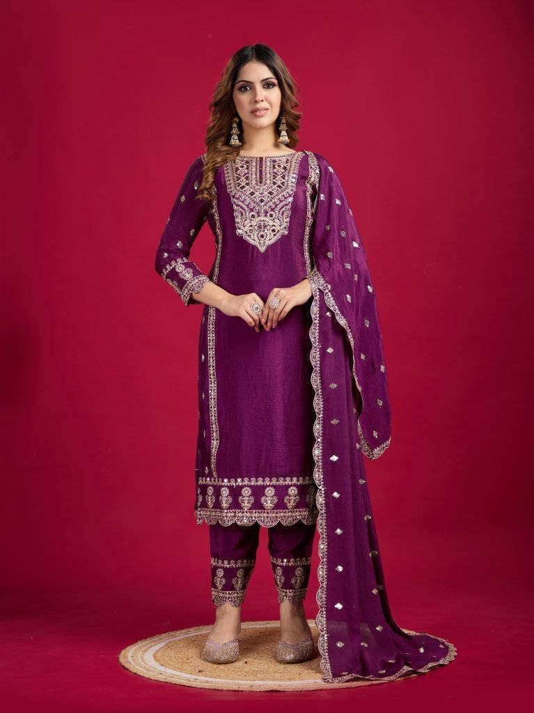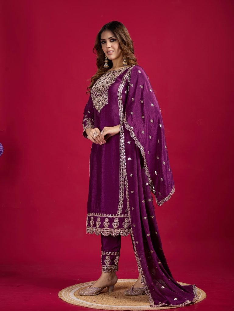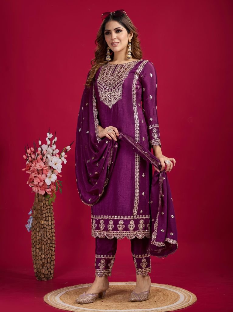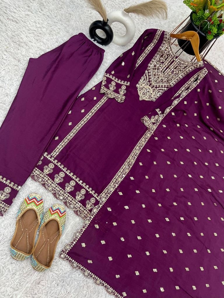 Bottom Fabrics :Pure Heavy Chinnon Silk With Heavy Embroidery Coding Sequence Work