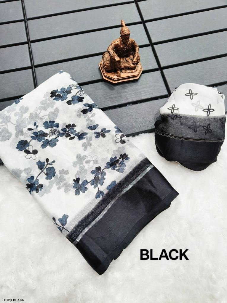 Description-Heavy moss chiffon saree with floral print and zari satin border all over sarees attached with perfectly matched pallu & blouse peice